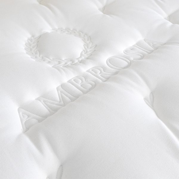Název matrace AMBROSIA i řecké motivy jsou přeneseny přímo do výšivky potahu matrace.