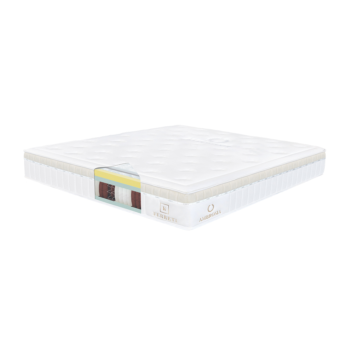 Vstupte do světa, kde se spánek mění v rituál a odpočinek v umění. AMBROSIA – nový, výjimečný matrac z luxusní kolekce PRIVÉ by FERRETI. Inspirovaný řeckou mytologií nese název potravy bohů – ambrosie – symbolu nesmrtelnosti, vitality a božské podstaty. Tento výjimečný matrac obsahuje přírodní propolis a med, které vnášejí do vašeho spánku harmonii, ochranu a hluboký klid.