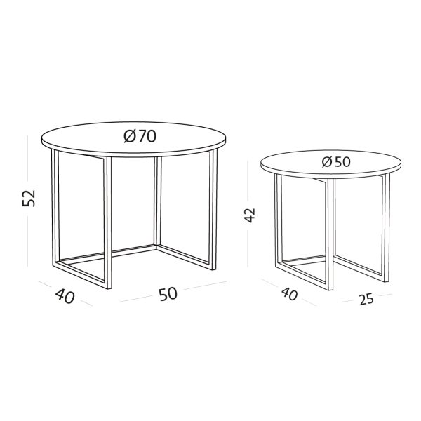 Lze je aranžovat jako set dvou stolků nebo je rozmístit samostatně v prostoru – do ložnice jako noční stolky, do obývací části, lobby či na recepci. Minimalistický design, kombinace pevné kovové konstrukce a odolné horní desky z nich činí univerzální řešení pro moderní hospitality segment. I při různém umístění si zachovávají jednotný designový styl a vytvářejí harmonický, kompaktní celek.